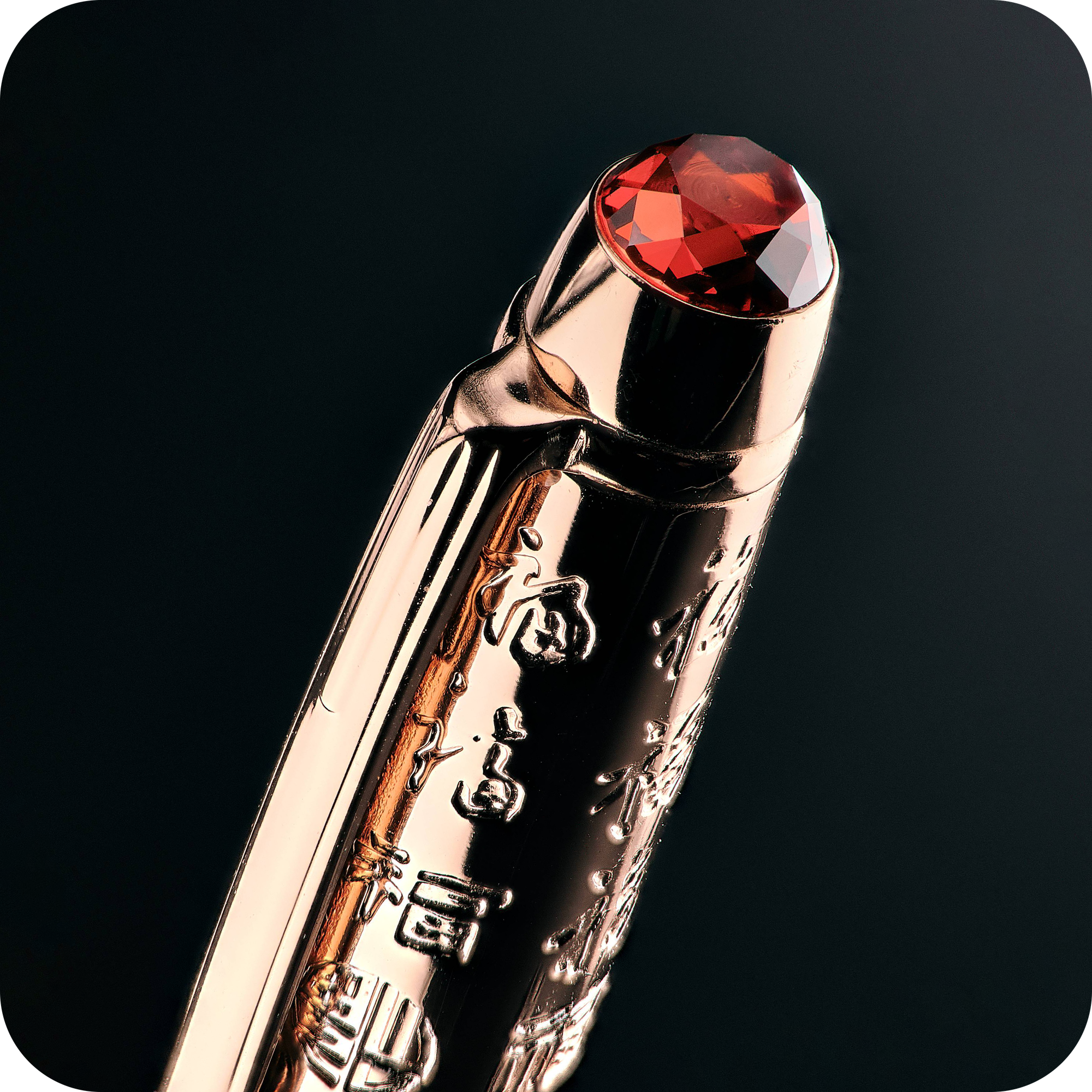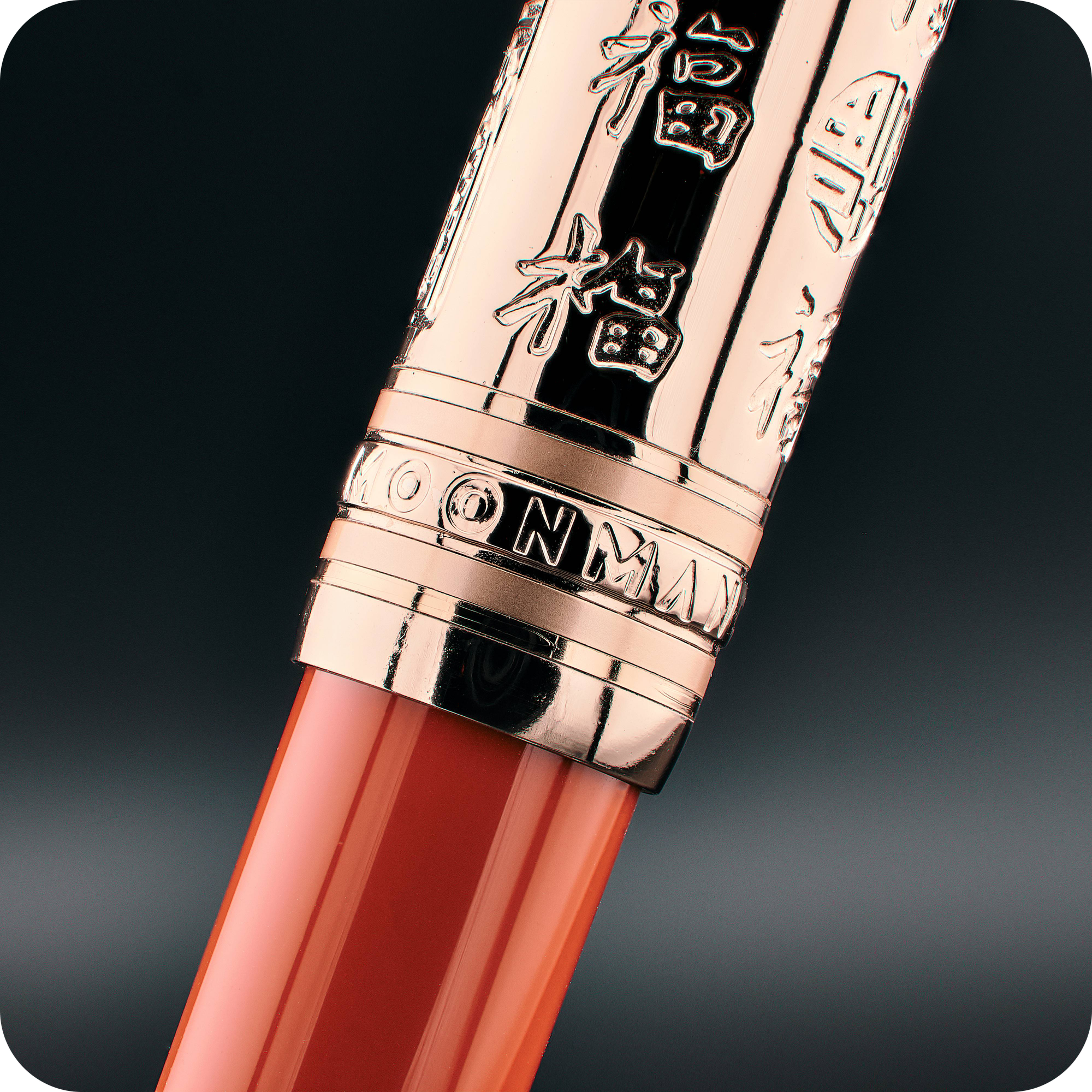 The P135 was the first in this series and has been around since at least 2020 in a few different designs. As the name alludes to, this is based on the small cartridge/converter Montblanc 145, with specific "inspiration" from the Unicef Solitaire Doue and Le Petit Prince models depending on which colourway you go for. I decided to go with the coral red & rose gold "Fu" edition as the rose gold stood out to me among it's silver-capped siblings, although I do prefer the motif on the cap of the dark red version a bit more. As mentioned earlier, this is a cartridge/converter pen just like the real 145, and the only one in this series that isn't a piston filler. Thanks to this, I have absolutely no idea what the "P" stands for if it isn't "Piston", that's if it ever even stood for anything in the first place...